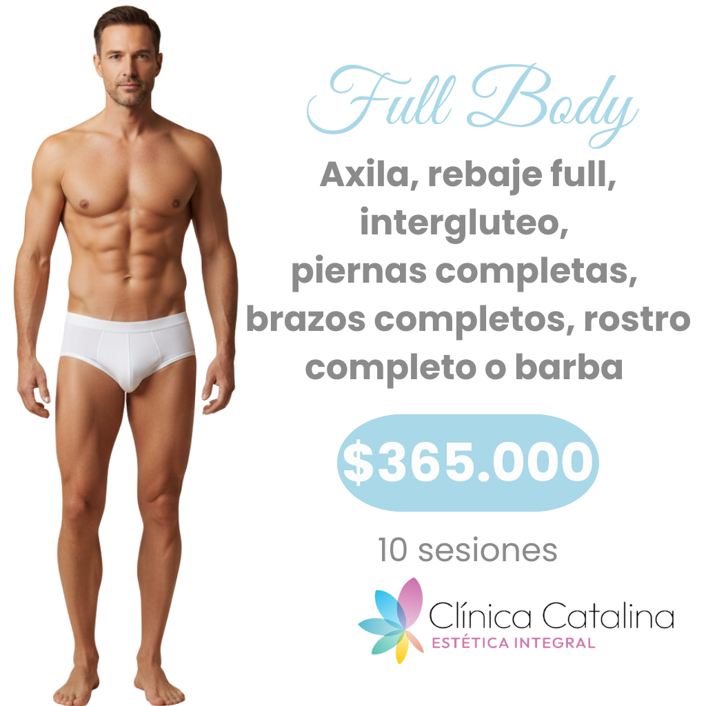 Tratamiento de depilación láser full body, enfocado en reducir progresivamente el vello en múltiples zonas corporales y faciales mediante tecnología segura y efectiva, ideal para lograr una piel más suave y resultados duraderos con 10 sesiones.